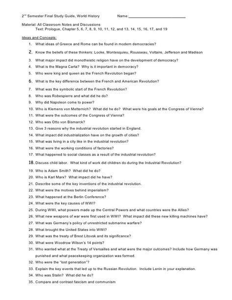 Download world history second semester study guide PDF
